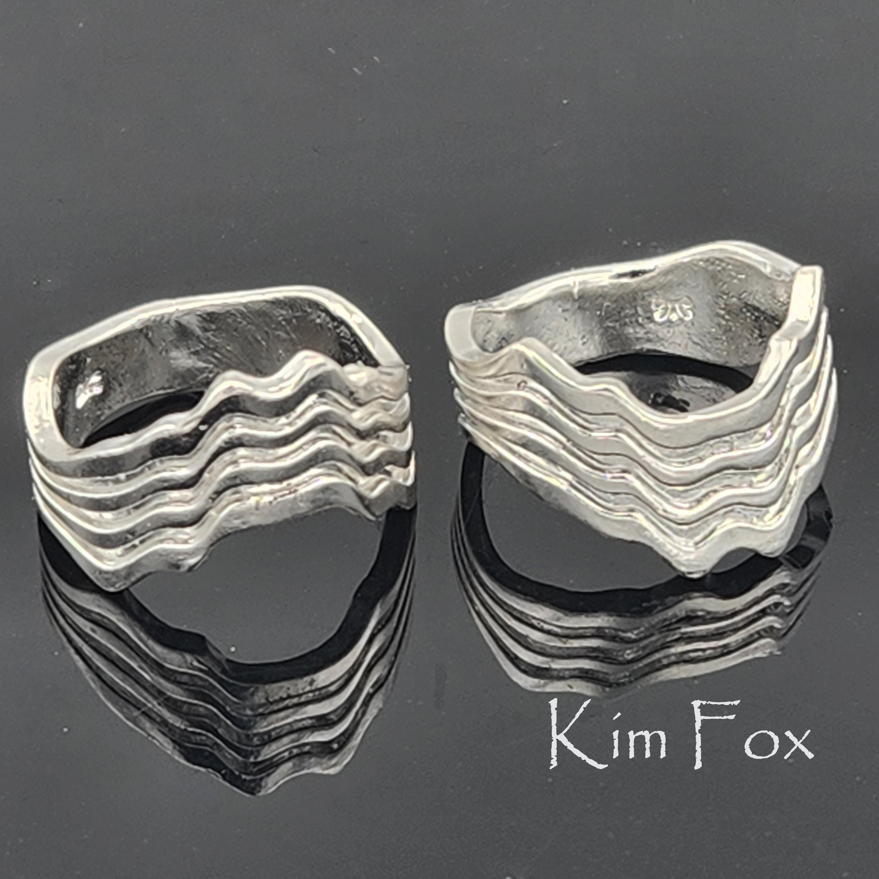 The rugged Arizona mountains and desert are imagined in this dimensional ring. Comfortable and reversible in it's design. Flattering as it appears to lengthen the finger on which it is worn. Suitable for both men and women. Easy to add a bezel set gemstone to this ring if you wish.